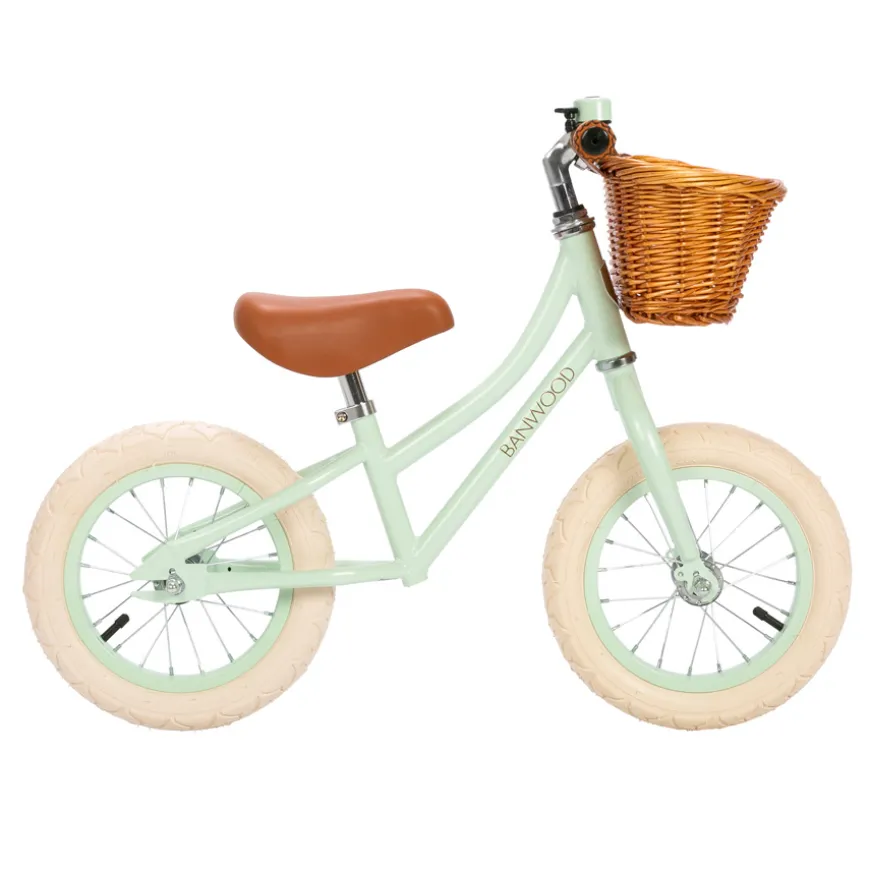 Das traumhaft schön gestaltete „First Go“ Laufrad aus dem Hause Banwood lässt nicht nur die Herzen kleiner Mädchen und Jungen höher schlagen. Ein in blassem Mint gehaltener robuster Rahmen steht im farblichen Kontrast zu den dicken Rädern und dem komfortablen braunen Sattel. So zieht das hochwertige Banwood Laufrad garantiert die Blicke auf sich.