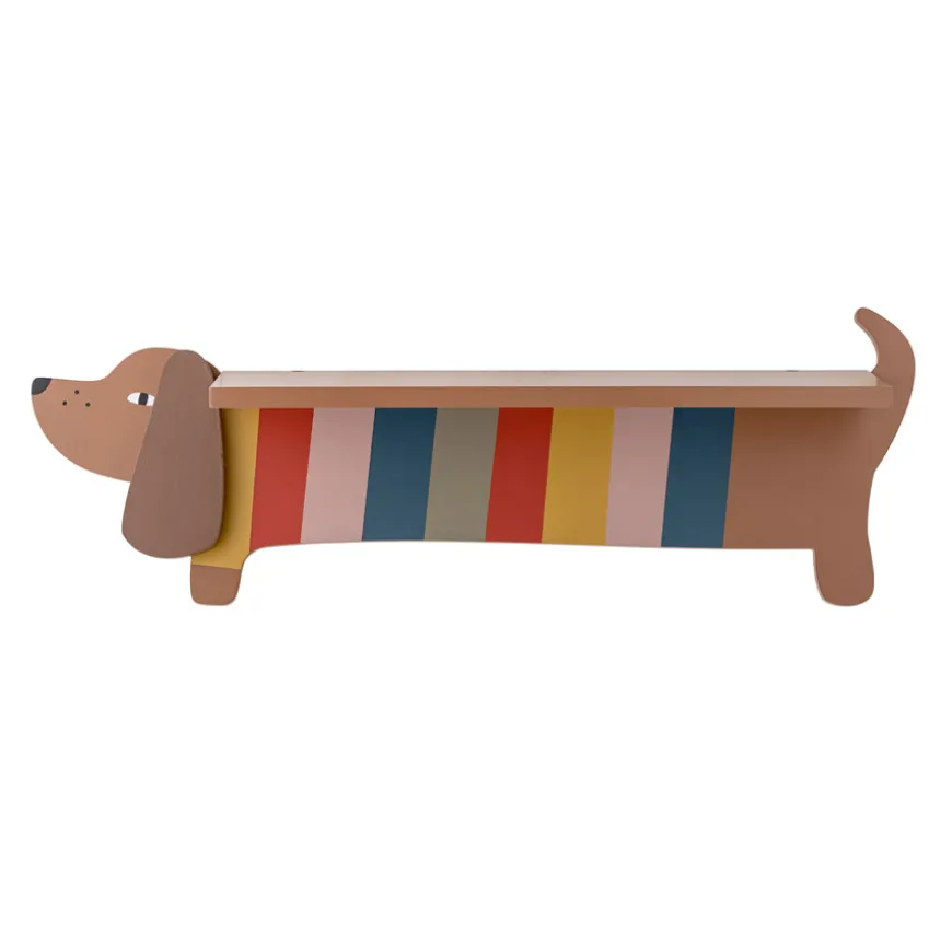 Das Bloomingville Regal ist eine wunderschöne Wanddekoration im Kinderzimmer und bietet sich gleichzeitig als gelungene Aufbewahrung an. Der fröhliche Dackel Charlie lässt seine Blicke umherschweifen und beweist dabei, wie stark er ist. Auf seinem Rücken finden Spielzeuge, Körbe oder Schmuckdosen ihren Platz. Die liebevolle Bloomingville Gestaltung mit Streifen und langen Ohren gefällt Mädchen und Jungen.