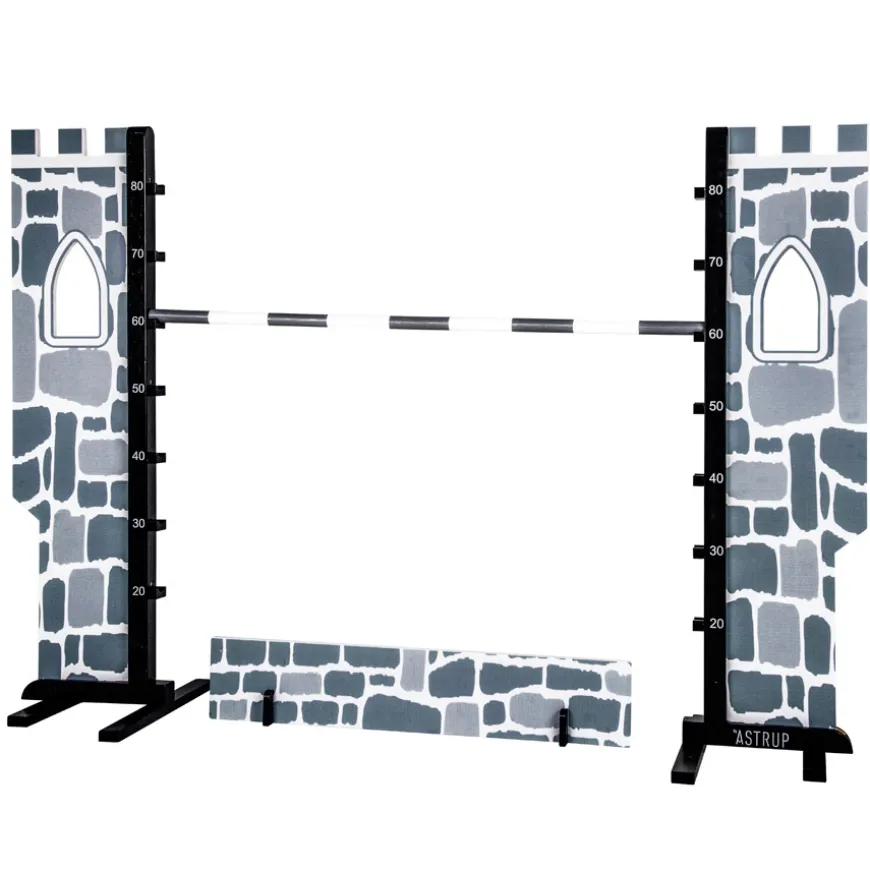 Eine perfekte Ergänzung zum Steckenpferd:by ASTRUP Hobby Horse Sprunghindernis Jump Castle. Hier lassen sich Sprünge ausprobieren – wer springt am höchsten? Die Stange kann in einer Höhe von 20 cm bis 80 cm eingestellt werden und fällt leicht aus den Haltern heraus, wodurch das Unfallrisiko minimiert wird.