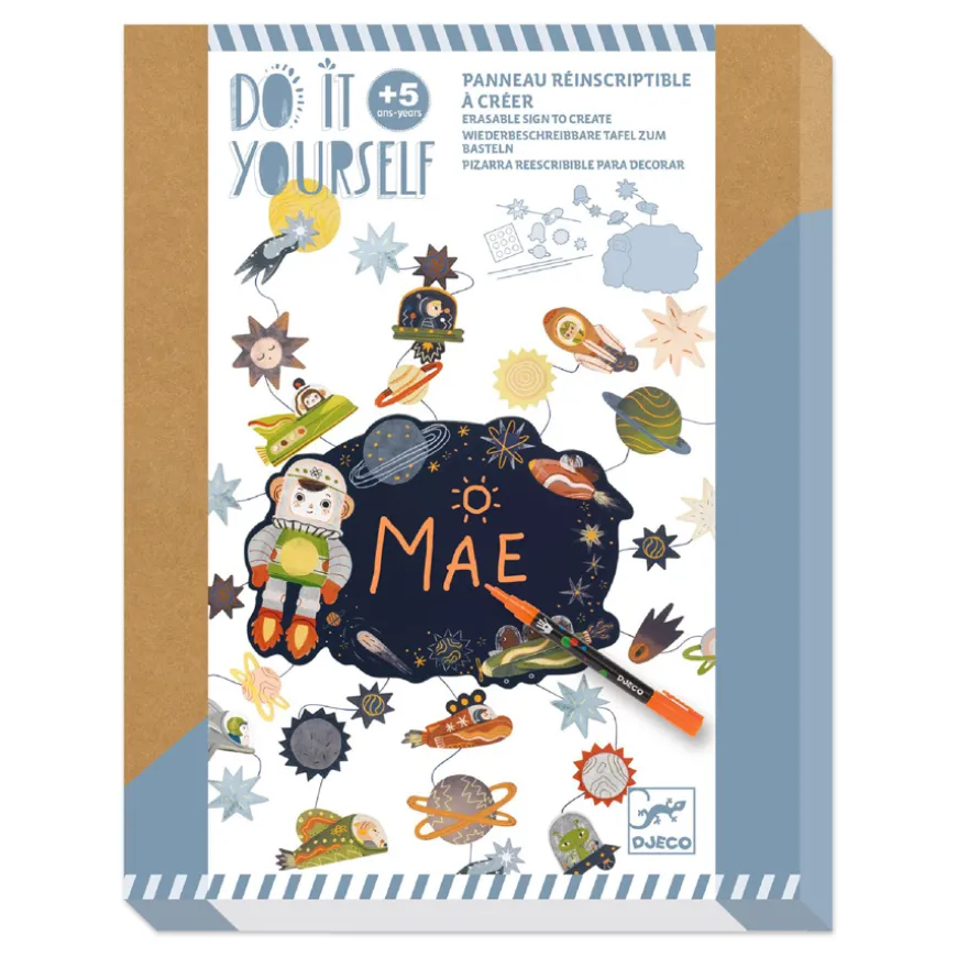 Jedes Kinderzimmer braucht ein Türschild – mit diesem Djeco DIY Set wird es besonders kreativ. Weltall-Fans freuen sich über Motive, die zum Träumen von entfernten Galaxien einladen. Ob Planeten, Astronauten oder Raketen – bei diesem Djeco DIY Türschild sind der Fantasie keine Grenzen gesetzt.