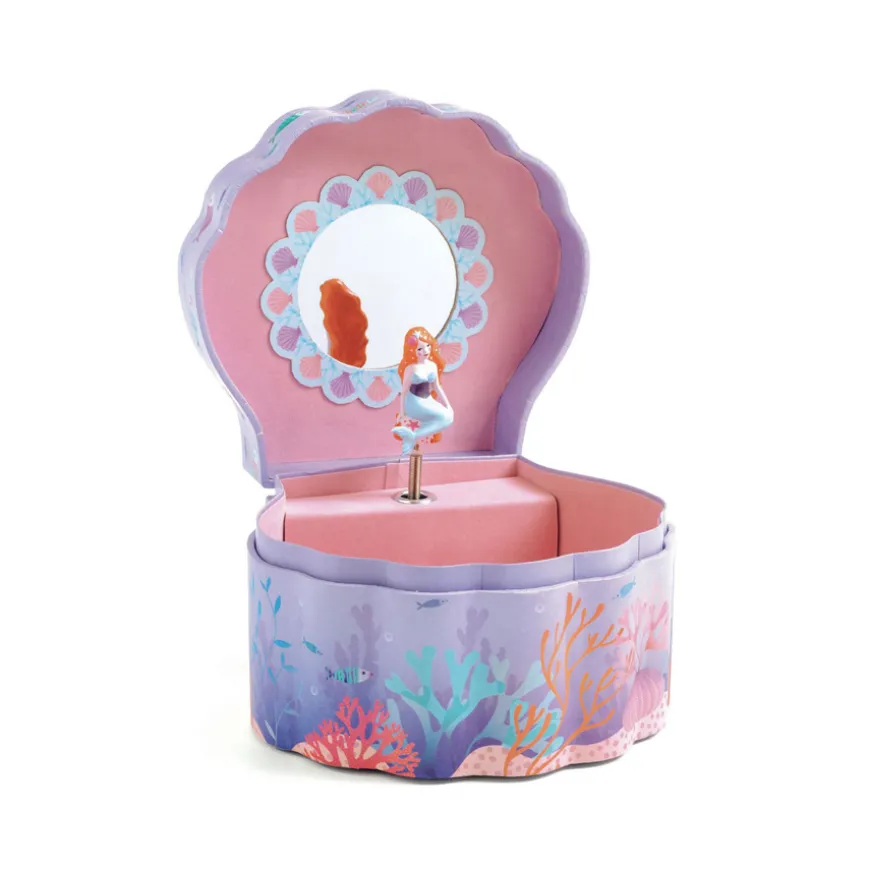 Kostbare Schätze lassen sich in dem Djeco Musik-Schmuckkästchen Verzauberte Meerjungfrau besonders schön aufbewahren. Die Kreation begeistert durch fantasievolle Farben und Muster – im Mittelpunkt steht natürlich die hübsche Meerjungfrau-Figur. Auch ein kleiner Spiegel und eine traumhafte Melodie verleihen diesem Djeco Schmuckkästchen das gewisse Etwas.