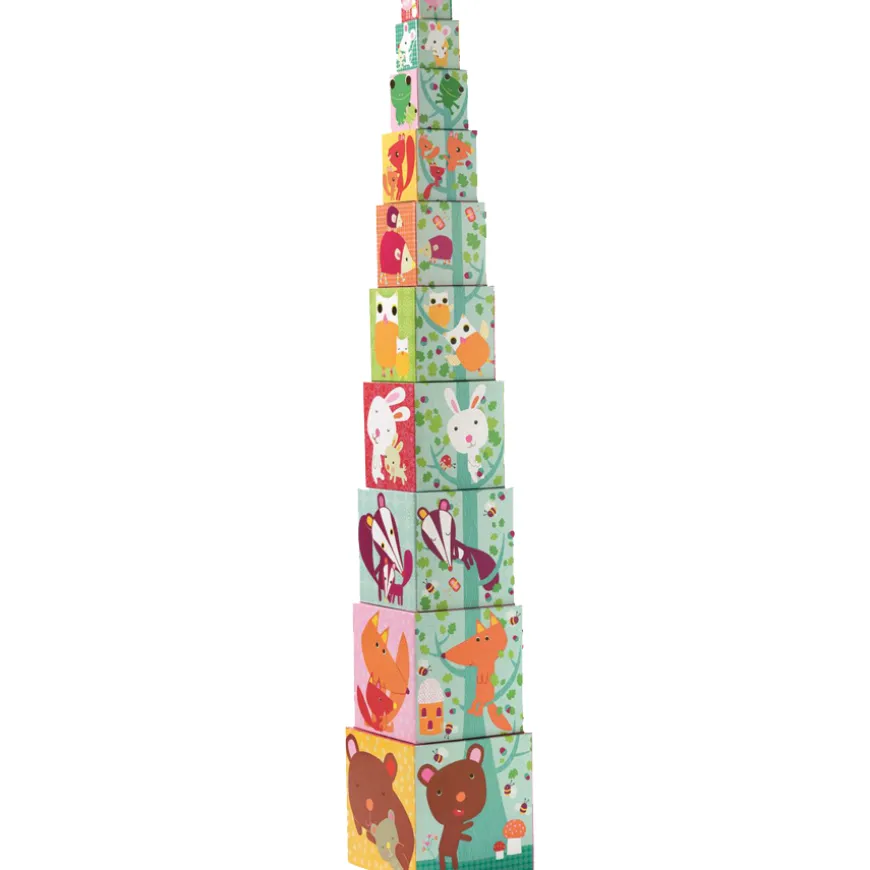 Dieses bezaubernde Motorik-Spielzeug von Djeco bereitet Kindern vieleschöne Spielstunden! Wunderschöne Illustrationen von beliebtenWaldtieren zieren die zehn unterschiedlich großen Würfel, dieaufeinander gestapelt werden sollen. So entsteht dank Djeco mitten imRaum ein fröhlicher Turm mit Igel, Fuchs und Eichhörnchen!