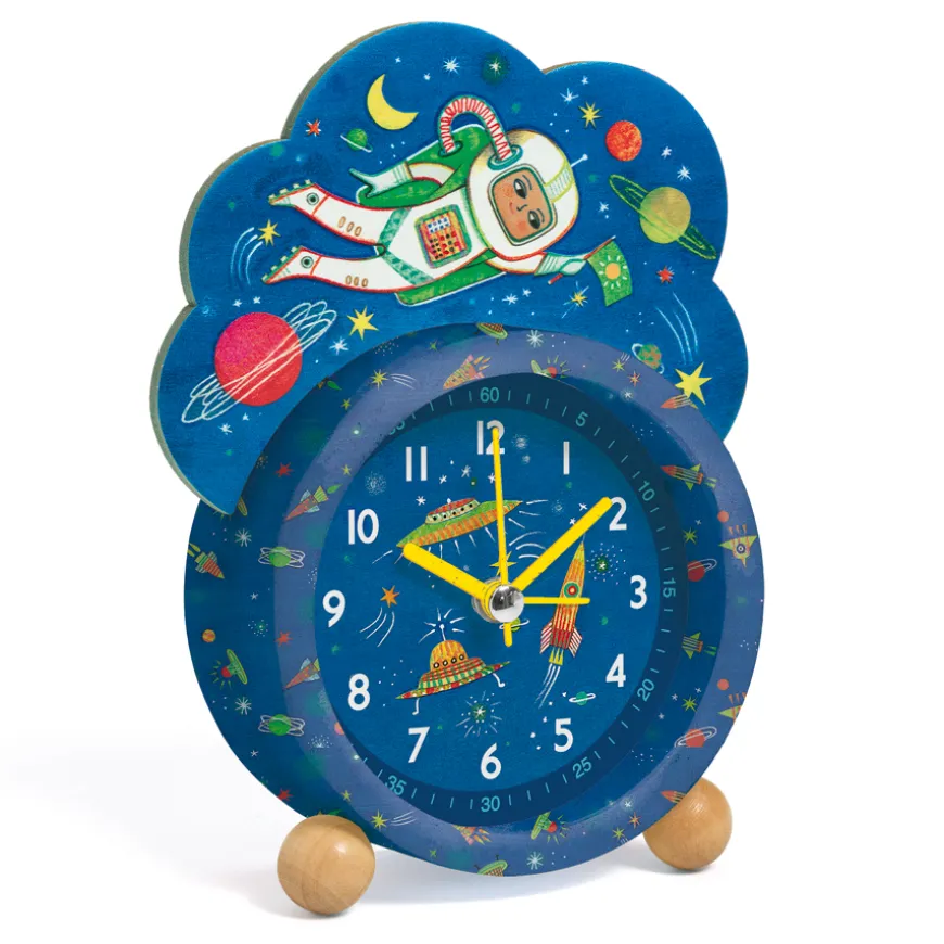Ground Control to Major Tom – Zeit zum Aufstehen! Dieser bezaubernde Wecker von Djeco ist genau das Richtige für alle zukünftigen Weltraumeroberer. Alle kleinen und großen Kinder, die schon immer davon geträumt haben, später einmal als Astronaut durchs All zu fliegen, werden von diesem tollen Wecker aus der kreativen Kollektion des französischen Herstellers Djeco begeistert sein.