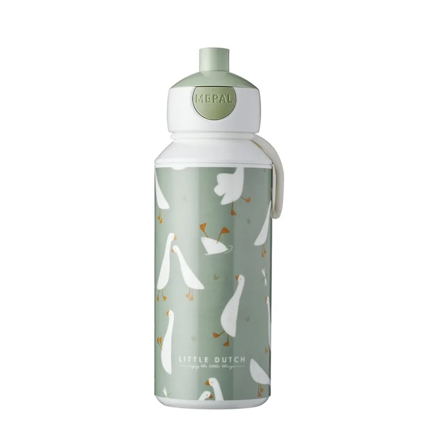 Die fröhlich watschelnden Gänse machen die herrliche Little Dutch Trinkflasche zu einem beliebten Accessoire für den Nachwuchs. Zum Einsatz kommt sie in der Schule sowie im Kindergarten oder bei einem gemeinsamen Ausflug. Um das Little Dutch Design zum Trinken zu öffnen, drücken Kinder einfach den seitlichen Knopf. Absolut praktisch und obendrein auslaufsicher gestaltet.