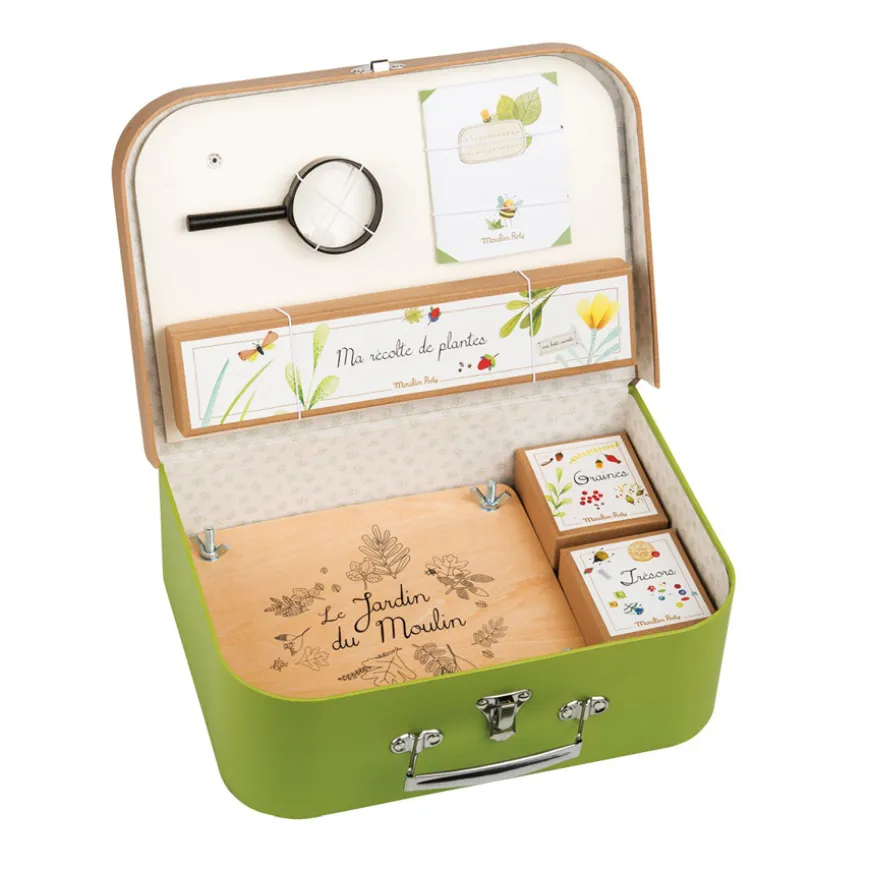 Dieser hübsche Koffer ist das ideale Geschenk für alle kleinen Forscher und die, die es noch werden wollen. Raus geht es in die Natur auf große Entdeckertour! Blüten und Blätter können mit der hübschen Presse getrocknet werden und die Lupe lässt winzige Insekten riesig groß erscheinen – in dem zauberhaften Koffer von Moulin Roty ist alles drin, was zukünftige Botaniker sich wünschen,