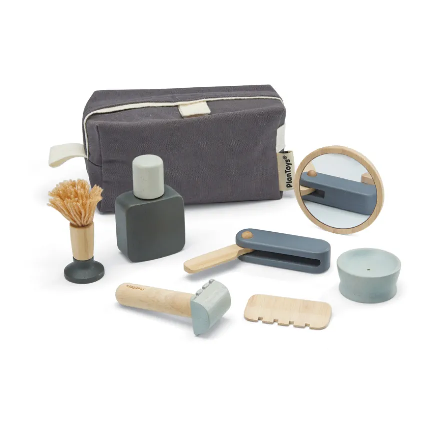 Mama schau mal, ich habe mich und Teddy Max rasiert – genau so, wie Papa das jeden Morgen macht! Mit dem wunderschönen Rasier Set von PlanToys haben zukünftige Chef Barbiere alles griffbereit, was man für dieses Handwerk benötigt. Und nach getaner Arbeit lassen sich Rasierpinsel, Rasiermesser, Aftershave und alle anderen Utensilien in der praktischen Tasche von PlanToys verstauen.