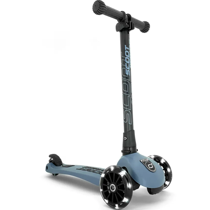 Wandelbar und langlebig für ganz viel Fahrspaß: Scoot and Ride Kickboard Highwaykick 3 LED steel. Das coolste Kickboard für Kinder ab 3 Jahren. Mit weißen LED Rädern und Überrollschutz. Der Lenker des Highwaykick 3 LED ist zusätzlich noch faltbar für ein besseres Handling.